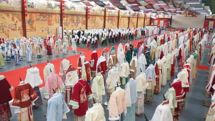 Com o renascimento da cultura tradicional, o Hanfu, como um tesouro da nação chinesa, vem atraindo cada vez mais a atenção e o amor das pessoas. A customização privada lançada pelas empresas de Hanfu em Caoxian, Shandong, atraiu clientes de todo o país, dando ao Hanfu um novo brilho. No salão de exposições Cruzando a Dinastia Tang, o repórter viu milhares de Hanfu de várias dinastias, todos exibidos no hall, cada um destacando a beleza do Hanfu tradicional, fazendo com que os clientes que vieram para comprar não conseguissem largá-los.