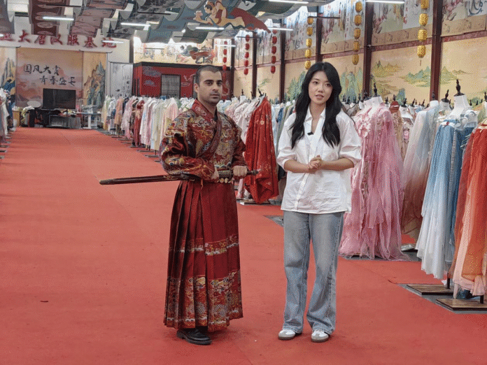 Recentemente, o jovem paquistanês Harry visitou a base industrial de Hanfu em Heze, na província de Shandong, e iniciou uma imersiva experiência cultural com as tradicionais vestimentas chinesas.