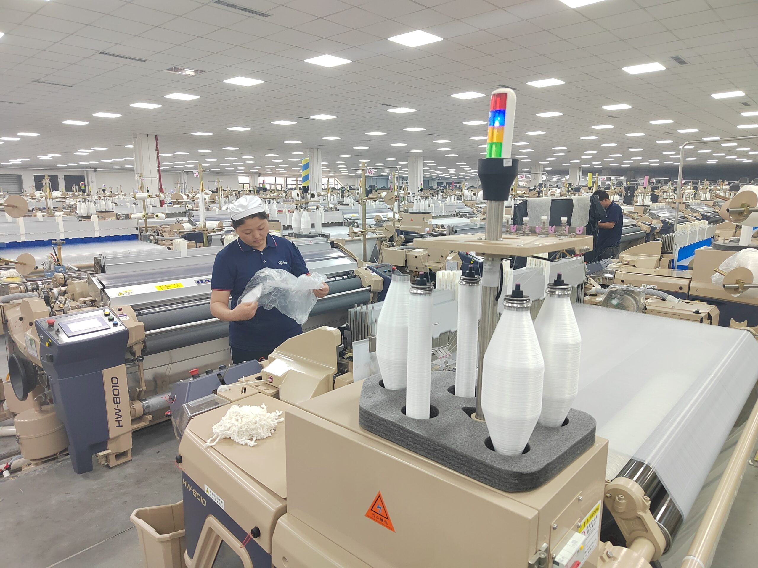 Recentemente, no Parque Industrial de Materiais de Fibra de Alta Qualidade Huaze, localizado na cidade de Heze, distrito de Dingtao, em Shandong, a linha de produção automática está operando eficientemente. Os produtos deste projeto são amplamente usados em setores de ponta como aeroespacial, militar, saúde e moda de luxo. Eles cobrem toda a cadeia de produção, desde um único fio até uma peça de roupa e novos materiais funcionais. O projeto inclui a construção de seis linhas de produção, das quais três, incluindo a de tingimento, já estão em plena produção. Heze está focando na reestruturação industrial para promover a modernização do setor e acelerar a digitalização industrial, visando aumentar a eficiência e incentivar o desenvolvimento inovador na indústria têxtil e de vestuário.