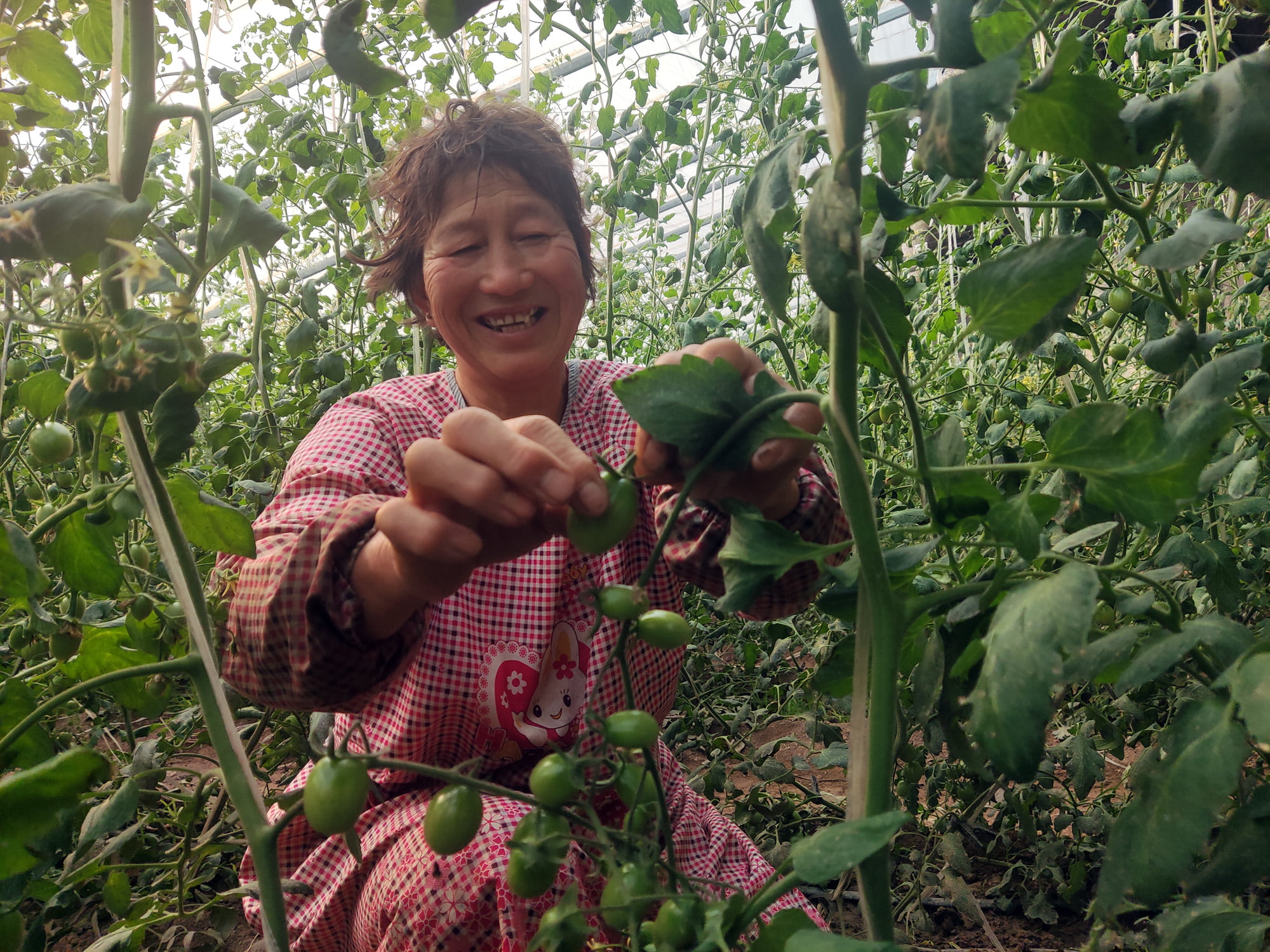 Nas estufas do Parque Agroecológico Shangyao da vila de Huji, no distrito de Mudan, os tomates maduros se assemelham a verdadeiras “esmeraldas”, pendurados nas videiras. Hou Yuhuan, uma trabalhadora ocupada na indústria agrícola, explicou que a variedade de tomate cultivada aqui era chamada de “Esmeralda”, diferentemente dos tomates convencionais, essa variedade amadureceu com uma cor verde. Esse produto “raro” tem trazido grandes benefícios para o parque ecológico.