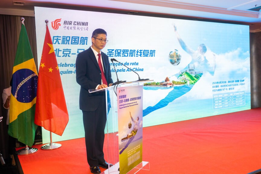 Yu Peng, em seu discurso, agradeceu aos esforços de todos que contribuíram para a retomada da rota aérea e destacou a relevância deste ano, que marca o 50º aniversário das relações diplomáticas entre China e Brasil. Ele ressaltou que a relação entre os dois países está em seu melhor momento histórico, com confiança estratégica reforçada e frutífera cooperação econômica e cultural.