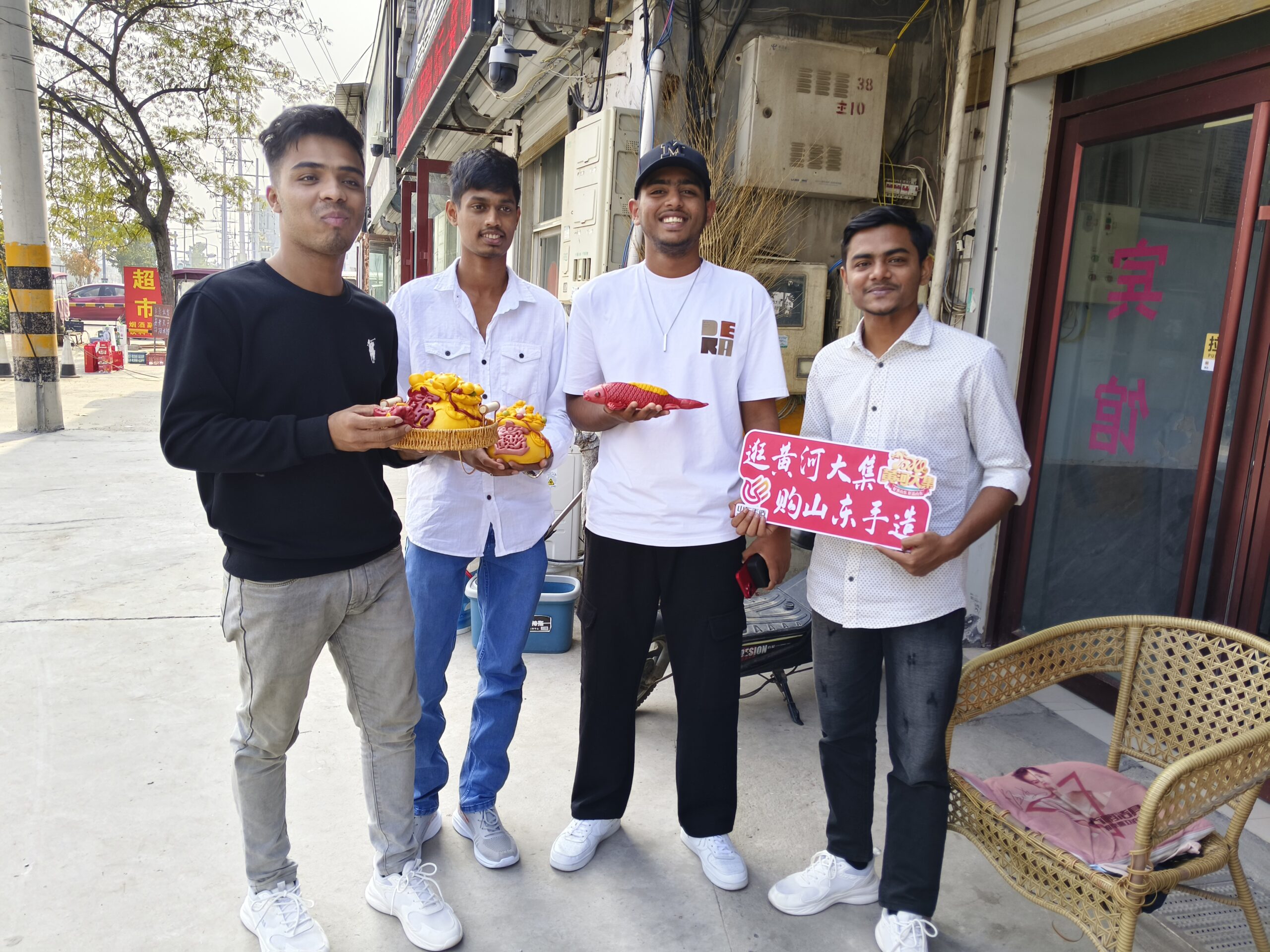 Recentemente, o Departamento de Propaganda do Comitê do Distrito de Mudan, em parceria com o Governo Popular da Vila de Xiaoliu, organizou uma visita com estudantes estrangeiros à feira local, permitindo-lhes saborear a culinária e vivenciar o charme único de “Mil anos de feira, cem sabores de Xiaoliu”.