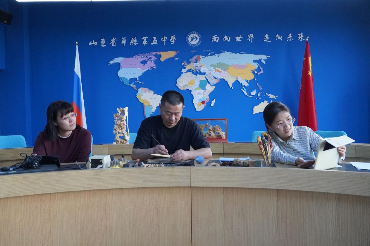 Com o objetivo de promover a cultura da peônia de Heze e compartilhar histórias sobre essa flor icônica, a Quinta Escola Secundária de Shanxian convidou o renomado técnico em escultura artesanal, Gao Xuedong, para ministrar uma palestra sobre a arte de escultura em raiz na aula virtual de chinês para jovens russos, organizada pela Aliança Sino-Russa de Escolas Secundárias. Mais de 20 estudantes de diversas cidades da Rússia participaram da aula online.
