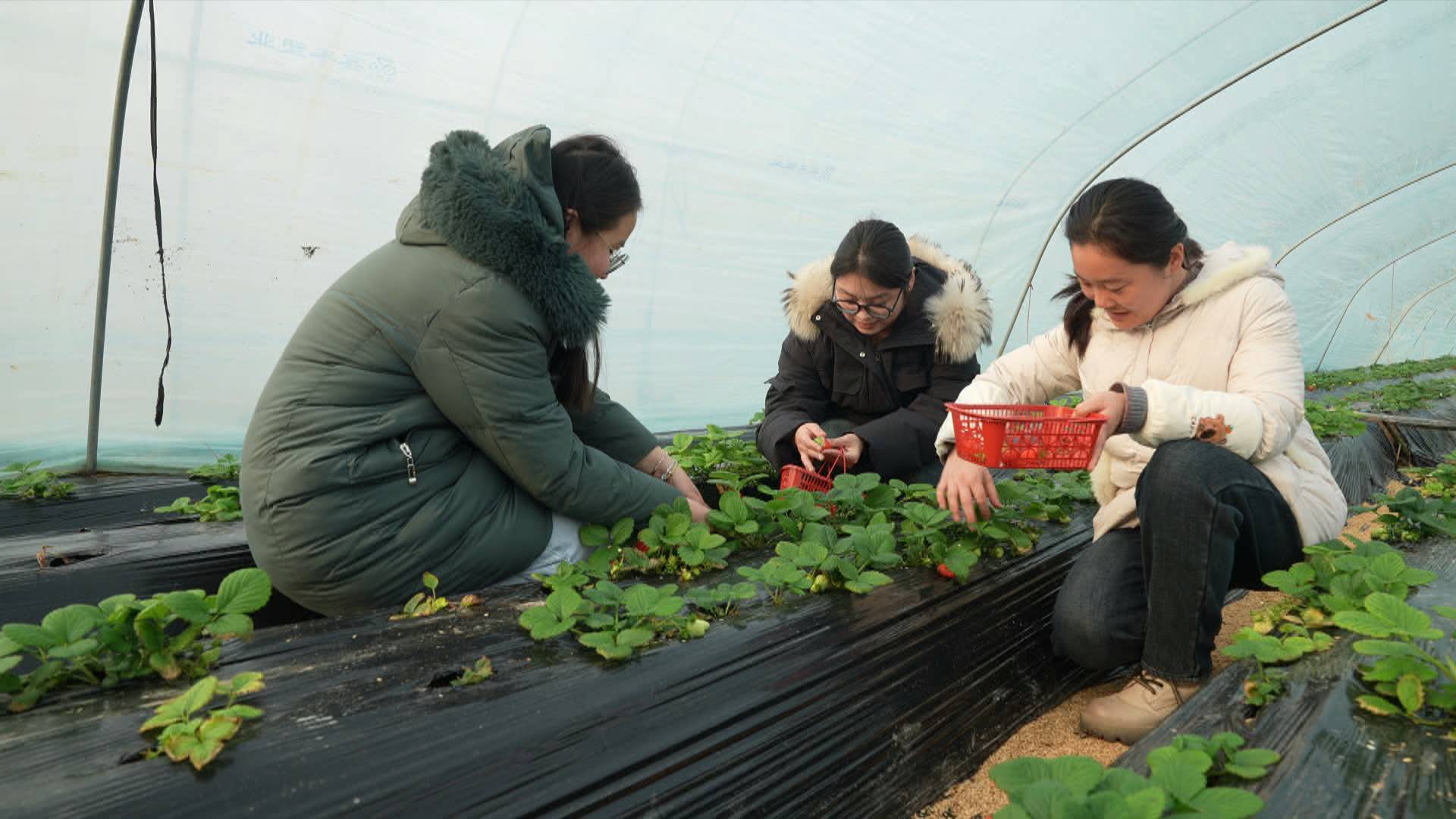 Na área rural de Ran Gu, no distrito de Dingtao, em uma propriedade familiar, os morangos vermelhos e brilhantes, delicados como rubis no inverno, evocam um clima festivo e são um convite ao paladar. Com um aroma frutado no ar, pequenos grupos de turistas carregando cestas se movimentam cuidadosamente entre os canteiros, colhendo morangos frescos e aproveitando momentos de lazer descontraídos.