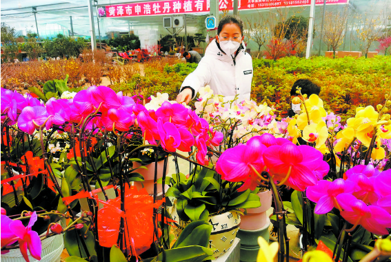 Recentemente, no Mercado de Flores Sudoeste de Shandong, no distrito de Mudan, os cidadãos estão escolhendo flores frescas. Com a proximidade do Ano Novo Chinês, os moradores estão comprando flores e plantas verdes para adicionar uma atmosfera festiva. Nos últimos anos, com base no desenvolvimento da indústria das peônias, o distrito de Mudan tem se concentrado em orientar e cultivar indústrias características de flores e mudas. Atualmente, foram desenvolvidas 25 aldeias (comunidades) especializadas no cultivo de peônias, paeônias, crisântemos, mudas, entre outras. Mais de 50 cooperativas relacionadas foram estabelecidas, e cinco grandes mercados de negociação foram construídos. O volume anual de transações de flores e mudas ultrapassa um bilhão de RMB, impulsionando o aumento da renda dos agricultores e contribuindo para a revitalização das áreas rurais.