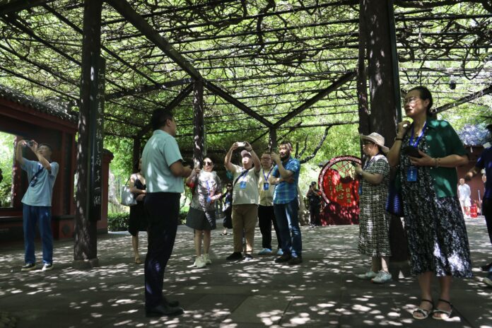Relatório especial da Agência de Notícias de Bazhong – Ao entrar no parque Guihu, localizado no distrito de Xindu, em Chengdu, província de Sichuan, o calor escaldante do verão parece suavizar instantaneamente. Dois pés de glicínia, cuja origem remonta ao período Ming e atribuída ao erudito e campeão imperial Yang Sheng’an, entrelaçam suas copas e formam um impressionante túnel de 500 metros quadrados de sombra. “É como atravessar uma fenda no tempo e no espaço, mergulhar num mundo verde dos sonhos. É difícil acreditar que no centro de uma cidade moderna exista um lugar tão mágico”, comentou Zheng Haiyan, vice-presidente do jornal venezuelano El Diario de los Chinos, no dia 27.