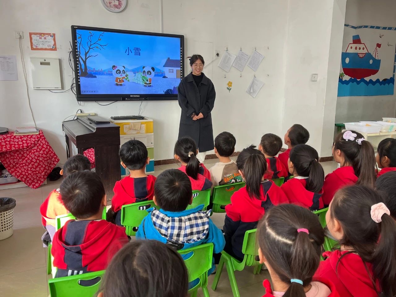 Em seguida, a professora Wang conduziu as crianças na tradicional arte de corte de papel, um ofício da cultura chinesa e patrimônio cultural imaterial, permitindo-lhes aprofundar o conhecimento sobre os termos solares “Xiao Xue” (Pequena Neve) e “Da Xue” (Grande Neve). Enquanto discutiam animadamente as técnicas de corte, as crianças se envolveram com entusiasmo na atividade prática, criando rapidamente coloridos e delicados “flocos de neve” com suas próprias mãos.