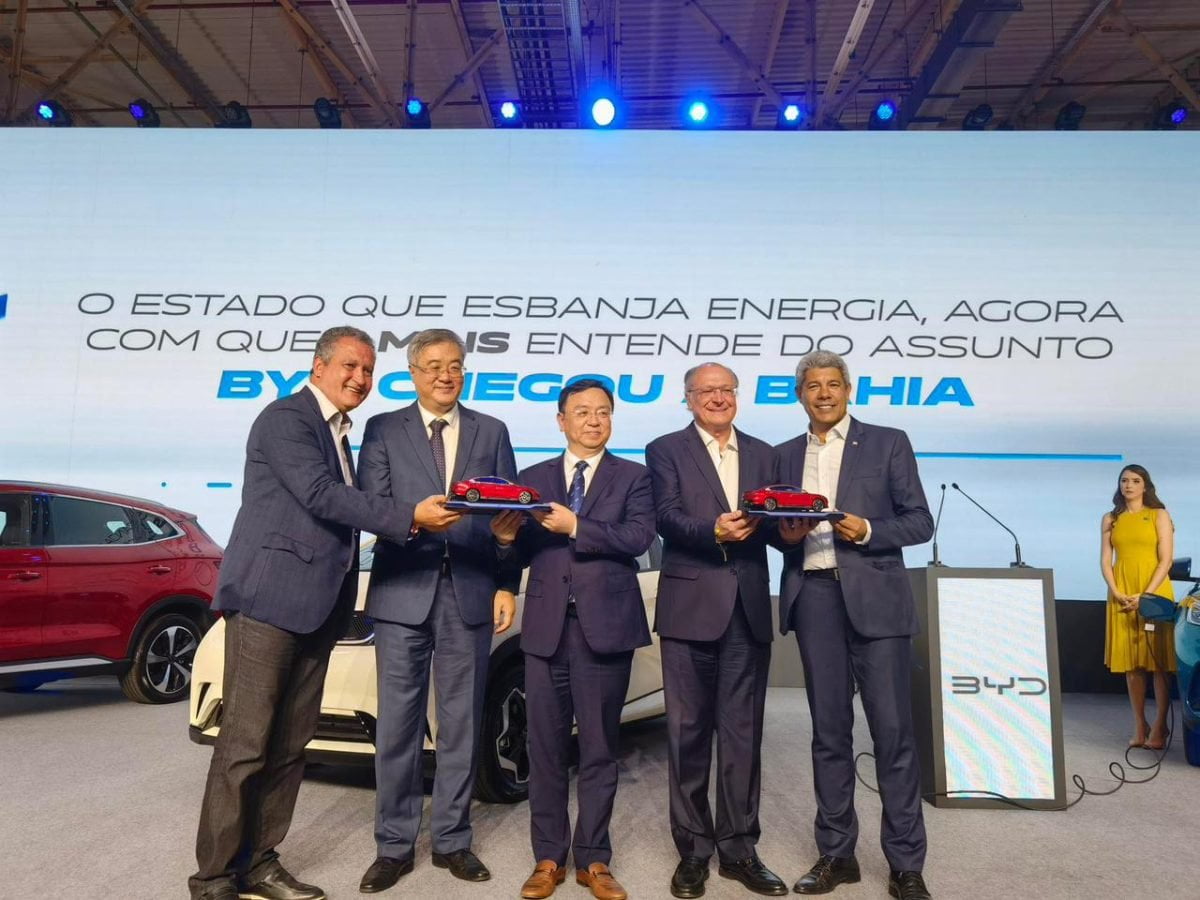 O Embaixador da China no Brasil, Zhu Qingqiao, participou ontem (9) com o vice-presidente Geraldo Alckmin, o Ministro Rui Costa e o Governador da Bahia, Jerônimo Rodrigues, da cerimônia de lançamento da pedra fundamental da fábrica da BYD Brasil, na Bahia.
