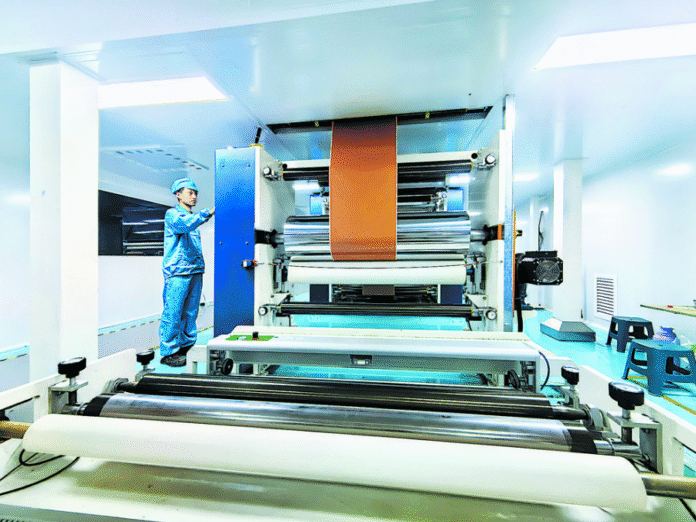 No dia 12 de novembro, técnicos estavam operando máquinas de laminação automática na linha de produção da Shandong Jingtuo New Material Technology Co., Ltd., localizada na região de Dingtao. A empresa é especializada na fabricação de materiais eletrônicos, incluindo películas blindagem eletromagnéticas para 4G/5G, películas de cobertura e fitas protetoras de silicone. Seu carro-chefe, a película blindagem eletromagnética, é essencial para o bloqueio de interferências em circuitos de produtos eletrônicos de consumo. Graças a este produto de tecnologia central, a companhia se tornou fornecedora de marcas consagradas como Huawei e Xiaomi.
