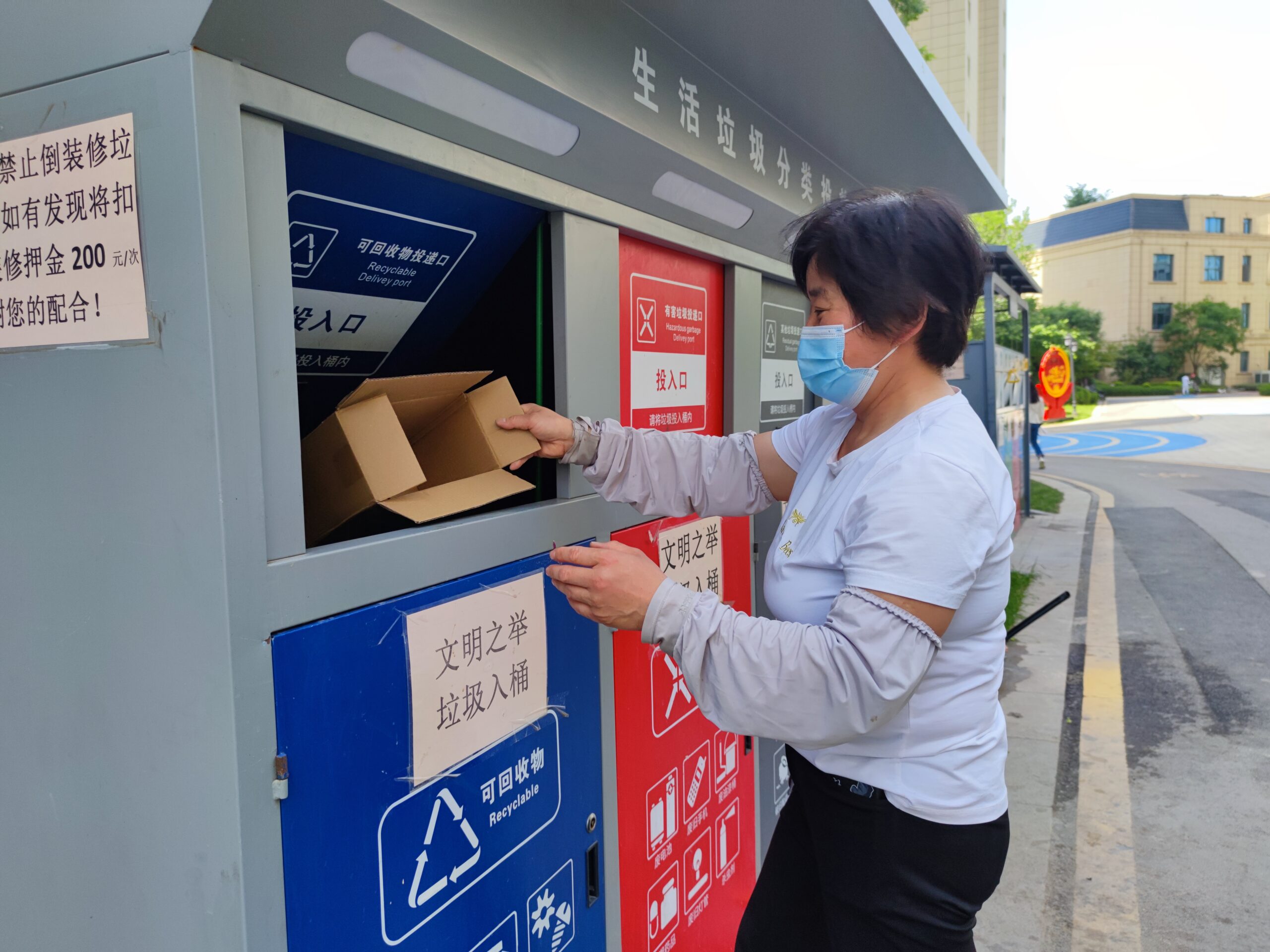 Recentemente, o repórter entrou na área residencial Hanlin Huating Fase III em Luxi New Area e viu que as estradas estavam limpas, e a luz solar brilhou através das folhas exuberantes, lançando sombras manchadas. Ao lado do cinturão verde puro, havia fileiras de novos caixotes de lixo com alças, e juntamente com os edifícios espalhados na comunidade, eles formaram um cenário limpo e habitável. Voluntários comunitários frequentemente vão à comunidade para popularizar os padrões de classificação de resíduos recicláveis, resíduos nocivos, resíduos de cozinha e outros resíduos aos moradores, e fornecer explicações detalhadas sobre classificação de lixo e conhecimento pós-processamento, fornecendo respostas direcionadas às perguntas dos moradores sobre classificação na vida diária, garantindo que os moradores possam distinguir e descartar corretamente o lixo.