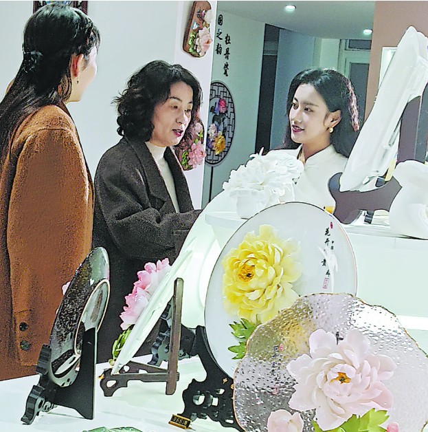 Ontem, em sua empresa, Liu Huili explicou que o processo de fabricação da porcelana de peônia é extremamente complexo, envolvendo mais de 20 etapas.