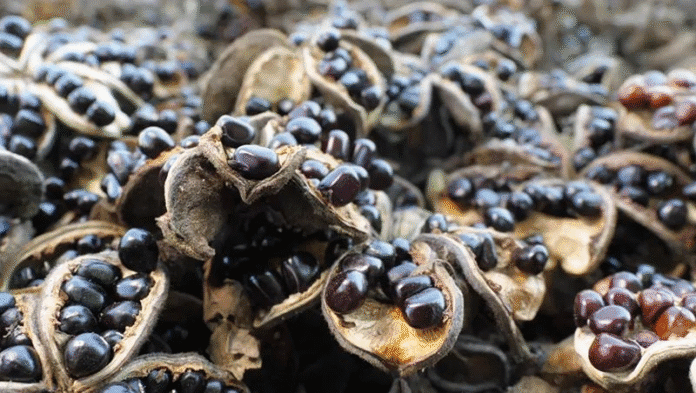 As sementes de peônia oleaginosa têm dois usos: as vagens, após secarem sob o sol forte, são usadas para produzir óleo de peônia; já as secas à sombra no galpão são usadas para cultivo de mudas. No momento em que as sementes negras e brilhantes saltam das vagens, embarcam em uma nova jornada de vida.