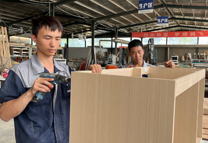Recentemente, um repórter visitou a oficina de empreendedorismo localizada na vila de Xu Zhuang, na cidade de Bandidian, distrito de Dingtao, Heze, província de Shandong, onde os trabalhadores estavam ocupados e organizados, criando uma cena de intensa atividade. Foi observado que a oficina produz móveis, incluindo armários sob medida, armários de cozinha, estantes para TV, entre outros, comercializados tanto online quanto offline. Atualmente, a oficina está empenhada em cumprir pedidos, ao mesmo tempo em que emprega mais de 20 moradores locais, proporcionando-lhes a oportunidade de trabalhar perto de casa e aumentar sua renda.