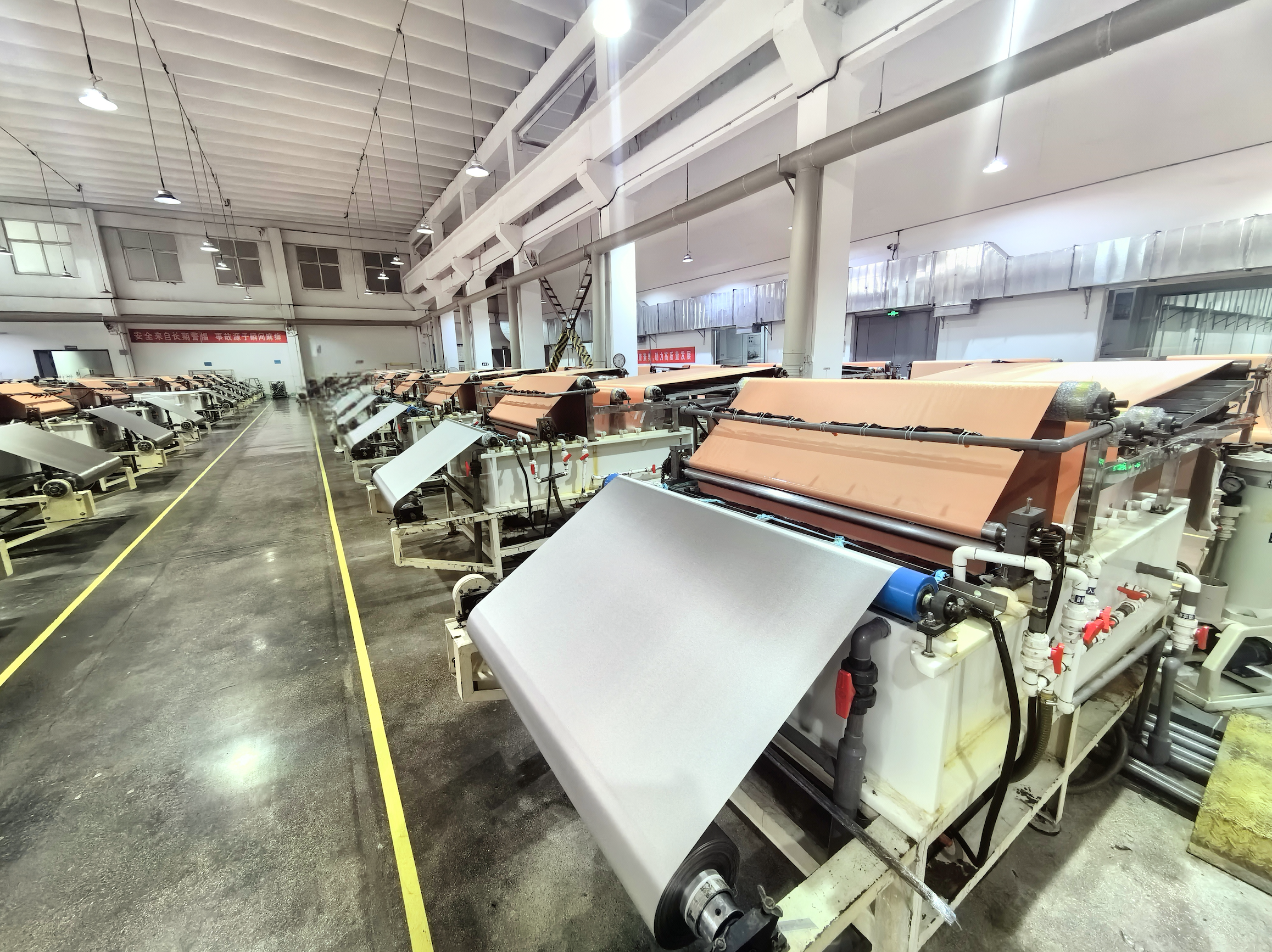 No chão de fábrica da Shandong Tianhou New Material Technology Co., Ltd., localizada no distrito de Dingtao, uma linha de produção inteligente de tecidos ultrafinos e flexíveis, com capacidade diária de produção de 30 mil metros quadrados, opera em plena capacidade, demonstrando um forte potencial produtivo. Nos últimos anos, o distrito de Dingtao tem respondido ativamente ao chamado nacional para promover a manufatura inteligente e a transformação digital, implementando uma série de estratégias nessa direção. Por meio de políticas de apoio e incentivos, o distrito tem incentivado as empresas a aumentarem seus investimentos em tecnologia, acelerando o processo de modernização industrial.