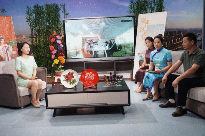 Na sequência, o encontro contou com uma exposição de criações artísticas inspiradas na peônia. A mestre em arte do papel recortado, Yao Hong, apresentou obras como Abertura da Peônia e Flor e Borboleta, feitas com a tradicional técnica de cortes contínuos. A professora Wei Yuexiang, do Centro de Educação Especial de Shanxian, exibiu delicadas gravuras em porcelana com estética moderna. A artista popular Shi Meihua encantou com Peônia no Jardim, feita com a técnica ancestral de flores de seda, originária da Dinastia Tang. O artesão Gao Xuedong, da loja Yangzi, apresentou um grampo de cabelo talhado em raiz de madeira com formato de peônia, combinando elegância e tradição.