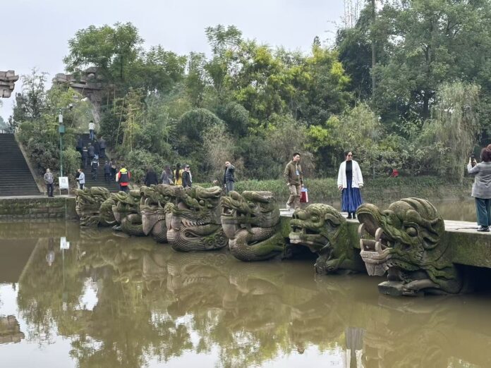 A mesma lógica de “ativar” recursos culturais está por trás da construção do Parque Ecológico Cultural da Ponte Longqiao, em Luxian. Tendo como núcleo a Longnao Bridge – maior ponte de lajes de pedra esculpidas em dragões do país e unidade de proteção de relíquias culturais em nível nacional –, o projeto prevê um complexo rural de cultura e turismo com 21,3 quilômetros quadrados. A área combina “marco cultural + base ecológica + cenários de consumo”, integrando paisagem, história e economia em uma única experiência. Com mais de 600 anos de história, a antiga ponte deixa de ser um vestígio isolado do passado para se tornar um verdadeiro “motor de fluxo”, capaz de atrair visitantes, gerar renda e impulsionar a revitalização das comunidades rurais ao redor.