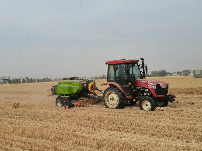 Durante a temporada de colheita do trigo em “Sanxia” (três principais atividades agrícolas de verão), a vila de Liupingfang, no distrito de Dingtao, em Heze, está a todo vapor com os trabalhos de coleta de palha. Máquinas de prensar e empacotar palha percorrem os campos recém-colhidos, prensando e empilhando rapidamente os restos de trigo como se fossem “tijolos dourados”, que ficam organizados no campo aguardando os caminhões para transporte até os depósitos.