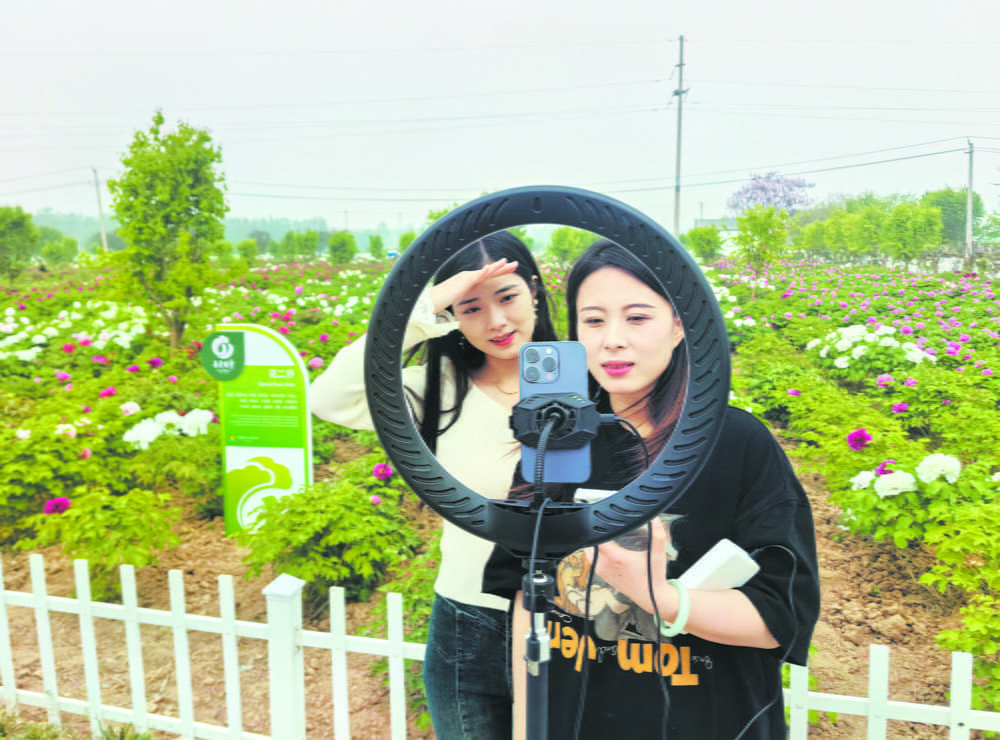 No dia 13 de abril, no Jardim de Peônias de Guanyu, no Distrito de Peônia, os trabalhadores estavam transmitindo ao vivo, proporcionando aos internautas uma “viagem aromática” única. Atualmente, as peônias no jardim estão em plena floração. O jardim também possui um palco para artes performáticas, onde se pode assistir a espetáculos de cultura imaterial como o Shandong Kuaishu, Zhui Zi Shu e Suona.