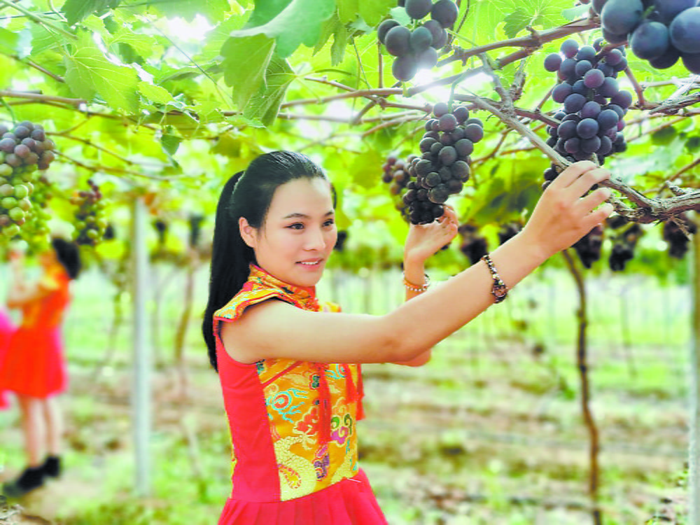 Recentemente, nos vinhedos da Aldeia de Dongtou, na Vila de Gaozhuang, no Distrito de Mudan, cachos de uvas cristalinas têm atraído turistas, que ficam com água na boca ao vê-las. Ansiosos, os visitantes se dedicam à colheita das uvas.