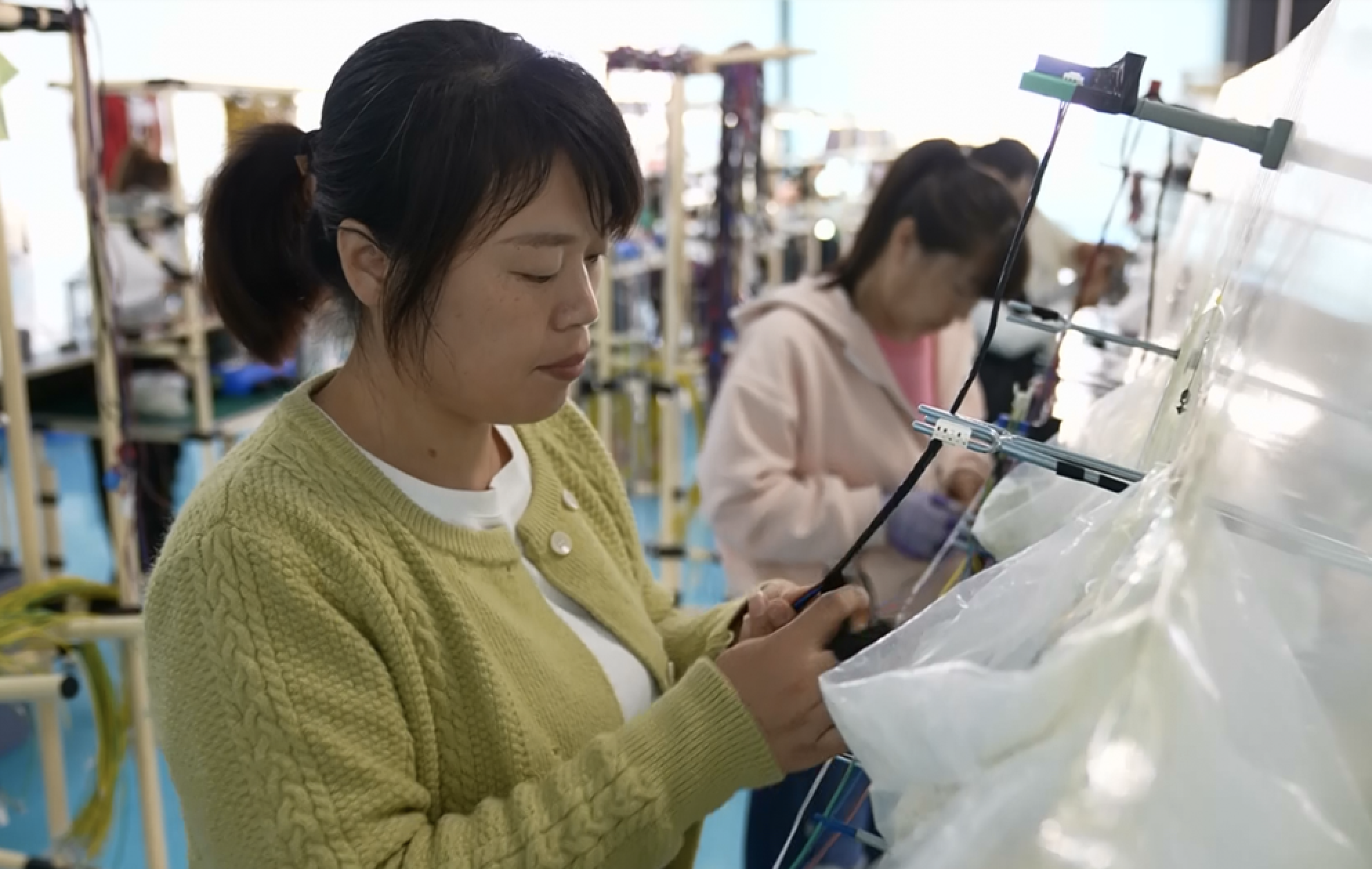 “Os trabalhos aqui são simples, fáceis de aprender e, em alguns casos, dá até para levar para casa. Trabalhando aqui, dá para ganhar mais de 4 mil yuans por mês”, conta Wang Yulan, uma moradora de 52 anos da vila Wangshuanglou, no município de Ranggu, com um sorriso no rosto enquanto trabalha. Depois de mais de um ano de aprendizado e prática, Wang Yulan já se tornou uma funcionária essencial da oficina.