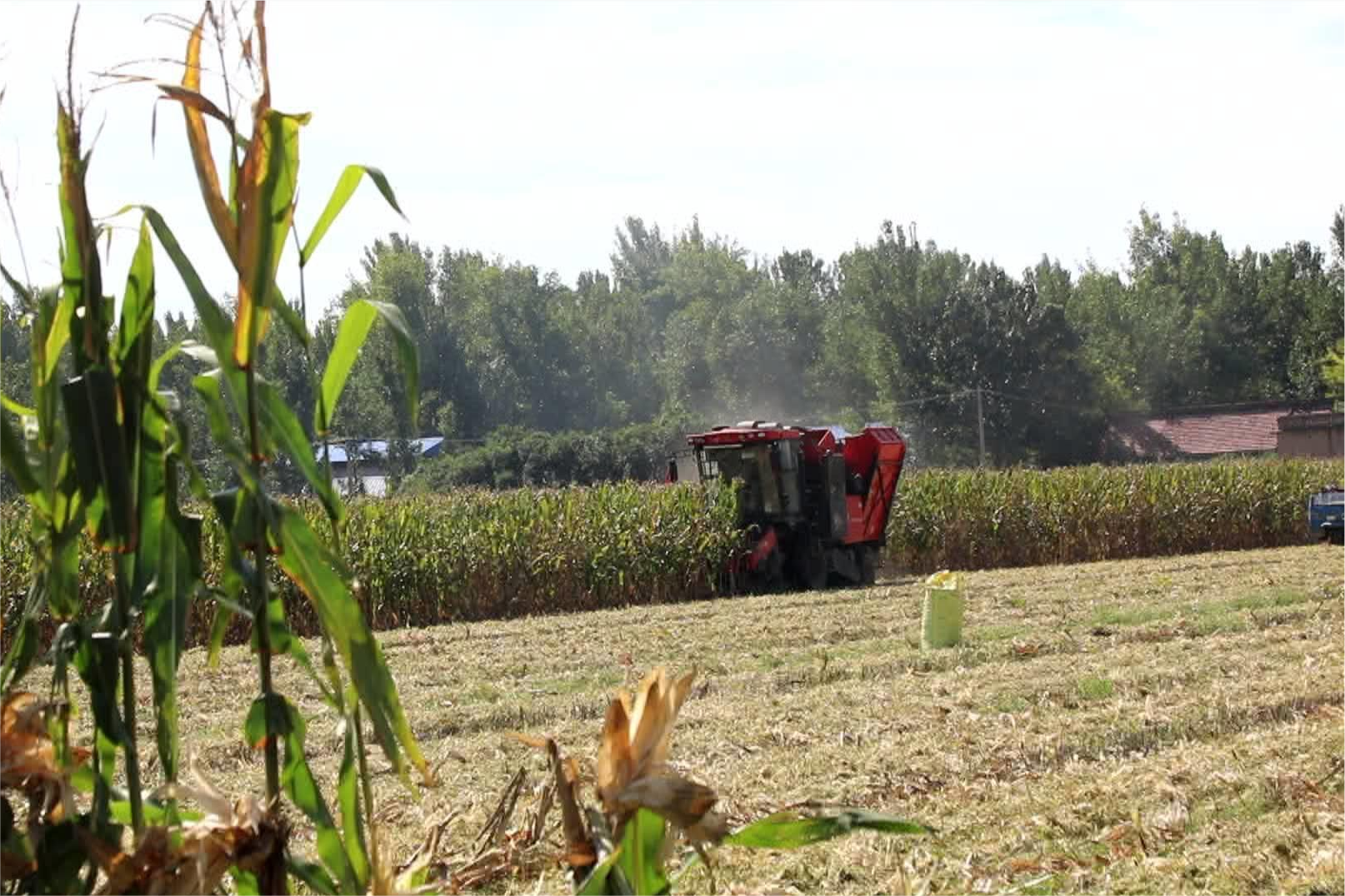 Nos campos de milho da aldeia de Houyanglou, sob a jurisdição do escritório da rua Binhe, cada planta está carregada de frutos pesados. Grandes colhedoras de grãos percorrem os campos, e o som das máquinas ecoa ao redor. As fileiras de milhos são rapidamente processadas, com as máquinas realizando todo o trabalho de coleta, descasque e trituração dos talos de maneira eficiente. À medida que as espigas de milho douradas são despejadas, a promessa de uma colheita abundante se concretiza com o armazenamento dos grãos.