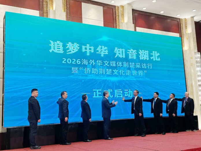 Em 26 de março, foi oficialmente lançada em Wuhan a iniciativa “Perseguindo o Sonho Chinês · Conhecendo Hubei” 2026 — Jornada de reportagem de mídias chinesas no exterior em Jingchu, juntamente com a atividade “Comunidade chinesa apoiando a cultura de Jingchu a ganhar o mundo”. Feng Wei, secretário do grupo partidário da Federação Provincial de Chineses Ultramarinos, fez o discurso de abertura, enquanto Li Fuping, inspetor de segundo nível do Departamento de Propaganda do Comitê Provincial, também discursou. Representantes de órgãos provinciais, bem como responsáveis das federações de chineses ultramarinos das cidades de Wuhan, Jingzhou, Suizhou e Xiaogan estiveram presentes. A cerimônia foi presidida por Wang Huiping, vice-presidente da federação.