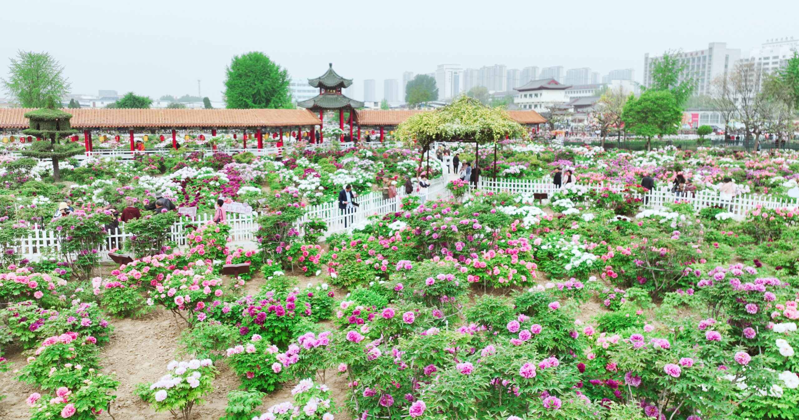 Nesta época do ano, as peônias em plena floração nos principais parques de Heze compõem um cenário espetacular de “mar de flores e multidões”.