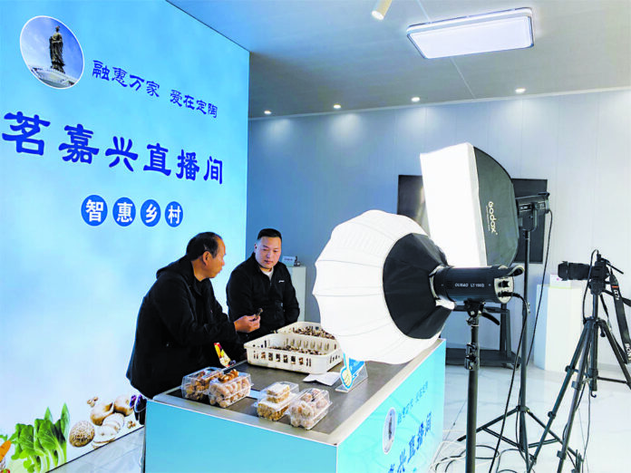 “Bem-vindos, amigos que estão chegando à nossa sala de transmissão ao vivo! Este é o canal de transmissão do ‘Primeiro Secretário’ para apoiar os agricultores. Agora vou apresentar a vocês o Cogumelo Termitomyces, conhecido como um dos ‘Quatro Grandes Cogumelos’.” Em 5 de novembro, na estação de trabalho “Sabedoria para Beneficiar as Aldeias” Mingjiaxing, Sun Zhenfu, “Primeiro Secretário” designado pelo Departamento de Agricultura e Assuntos Rurais do Distrito de Dingtao, na cidade de Heze, província de Shandong, estava realizando uma transmissão ao vivo para vender produtos agrícolas locais.