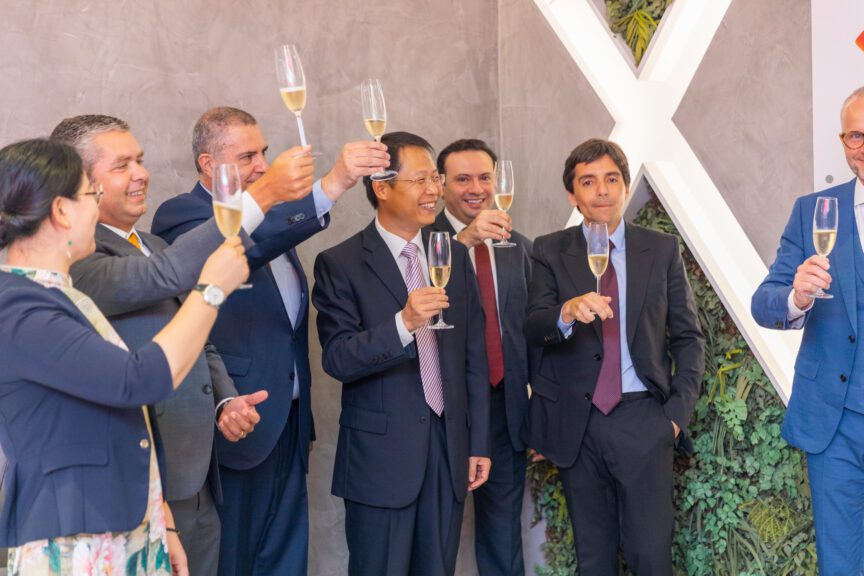 Os representantes da PowerChina, o gerente geral Chen Guanfu, o Diretor financeiro geral Yang Tianfu e o gerente geral da sede regional das Américas, Hou Xiaobin, participaram da cerimônia de entrega de ações e inauguração online. A cerimônia foi presidida pelo vice-gerente geral da sede regional das Américas e líder do grupo de preparação do projeto de energia solar de Mauriti, Yan Xiaobin.